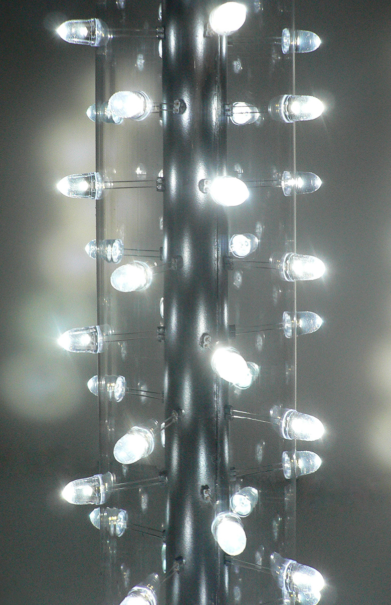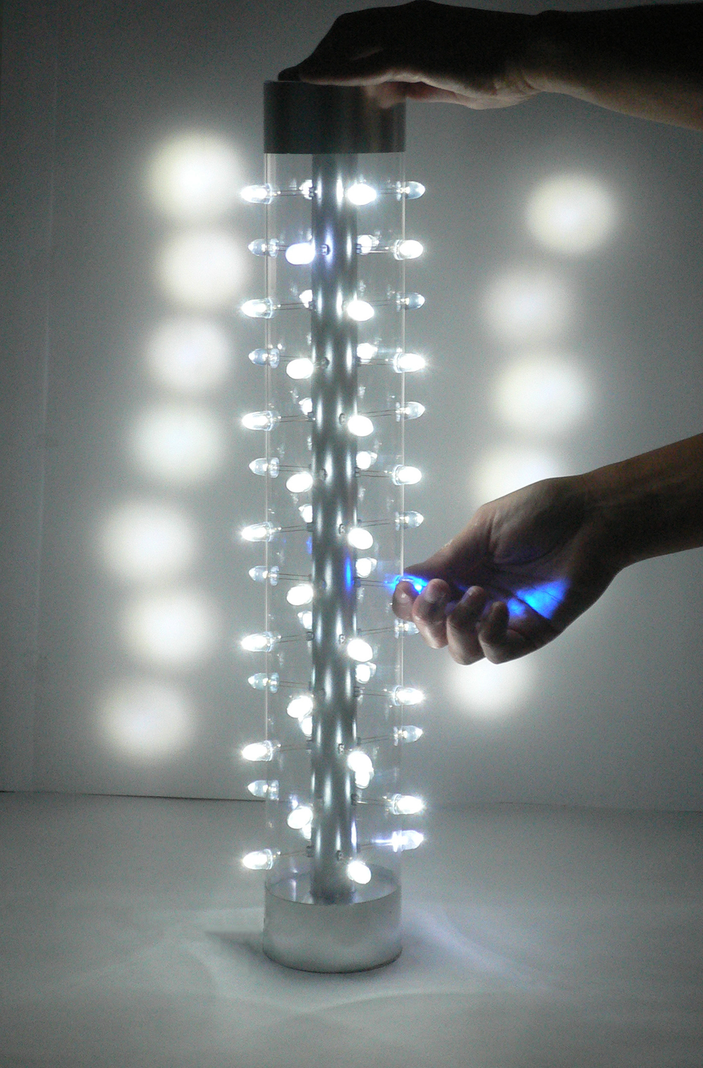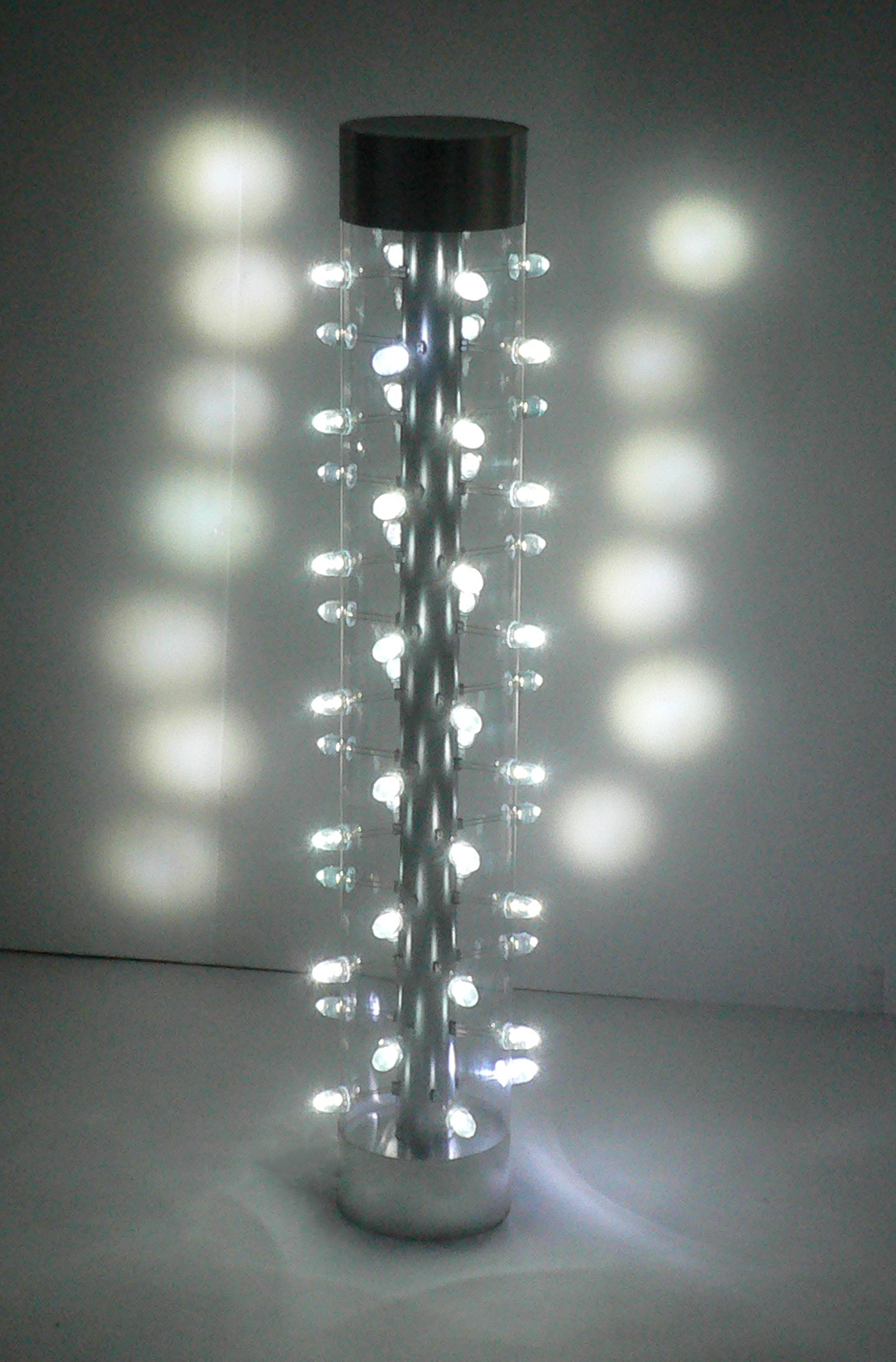 Simple and funny the lamp uses LEDs and is inspired by the skin of a chameleon. Depending of the colours and the intensity of the LEDs it can be used to illuminate various environments.
